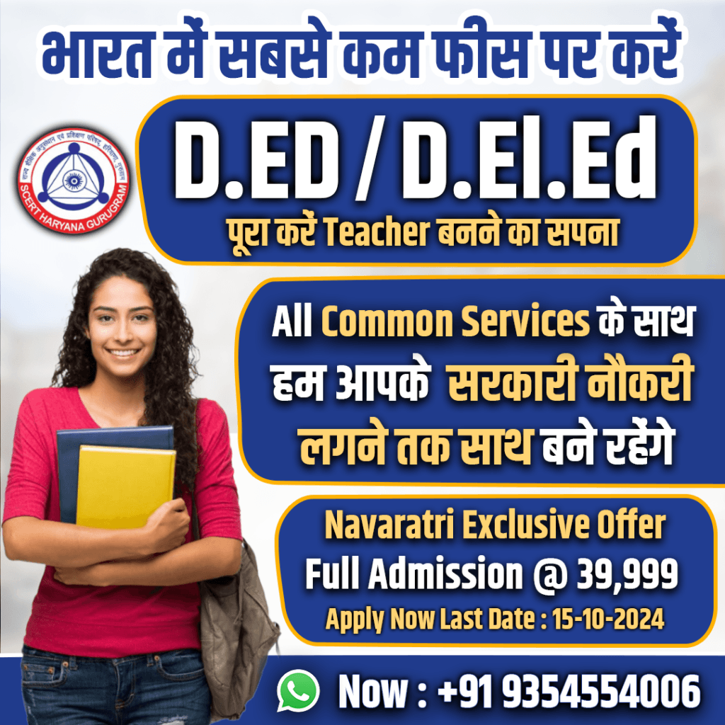 Haryana Deled Dear students, there are various courses available by which you can prepare yourself to make government Teacher. State Council of Educational Research and Training (SCERT) Haryana offers two year regular Diploma in Elementary Education (D.El.Ed.) programme for those who want to be a primary teacher in school education system. The Notification for SCERT Haryana