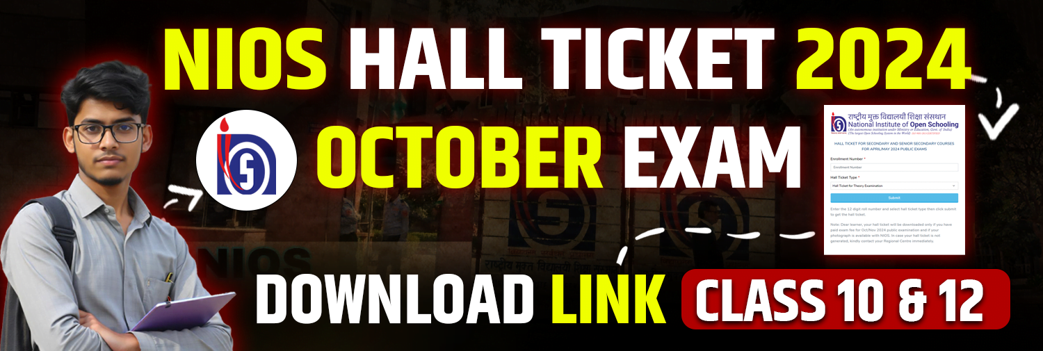 The National Institute of Open Schooling (NIOS) has released the Hall Ticket For October 2024 Public Exam Students can download their NIOS Hall Ticket by entering their enrollment number and selecting the hall ticket type (practical/theory). This hall ticket contains essential information such as exam dates, center address, and student details. Keep reading for key dates, download steps, and important instructions regarding the NIOS Hall Ticket 2024.
